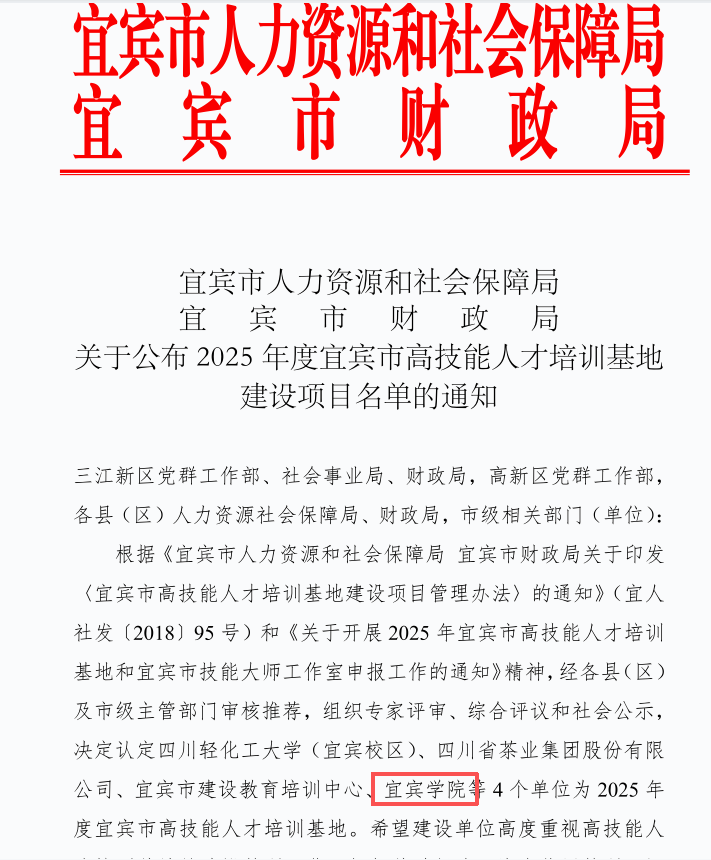 近日,宜宾市人力资源和社米乐6m登录保障局联合市财政局正式发布公告,我米乐网页版凭借在食品发酵领域的深厚积淀与办学实力,成功入选2025年度宜宾市高技能人才培训基地。1月19日,宜宾市人民政府副市长刘勇为基地授牌。这是我米乐网页版深化米乐网页版地合作、产教融合、服务地方经济的重要成果,是在高技能人才培育领域的突破,标志着学米乐网页版在应用型转型办学方面迈出新的一步,为地方高技能人才培养注入动能。